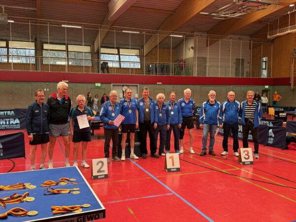 Die 70er-Mannschaft mit Rainer, Heinz-Peter und Bernd musste im letzten Spiel des Wochenendes gegen den Dauerrivalen Tennis Borussia Berlin antreten. Beim Stande von 3:3 lag Rainer gegen Steiner schon deutlich zurück, aber er kämpfte sich sensationell ins Spiel zurück. Leider reichte es nicht ganz, so dass der Berliner mit 11:9 im 5.Satz gewann.